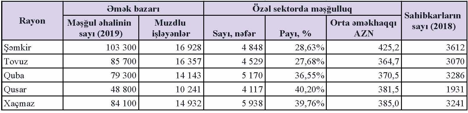 Ancaq bu bölgələrdə işçilərin bölgüsündə problemlər var. Məsələn, 2020-ci ilin sonunda Şəmkir rayonunda rəsmən 16 928 muzdlu işçi mövcud olub. Onların 12 080-i (yəni 71%-i) dövlət sektorunda çalışıb.