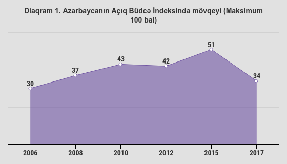 Azərbaycan Açıq Büdcə İndeksi 2017 üzrə 100 mümkün baldan 34-nü toplayaraq 115 ölkə arasında 78-ci sıraya geriləyib. Azərbaycanın topladığı 34 bal 2015-ci ildəki nəticəsindən (51 bal) əhəmiyyətli dərəcədə aşağıdır.