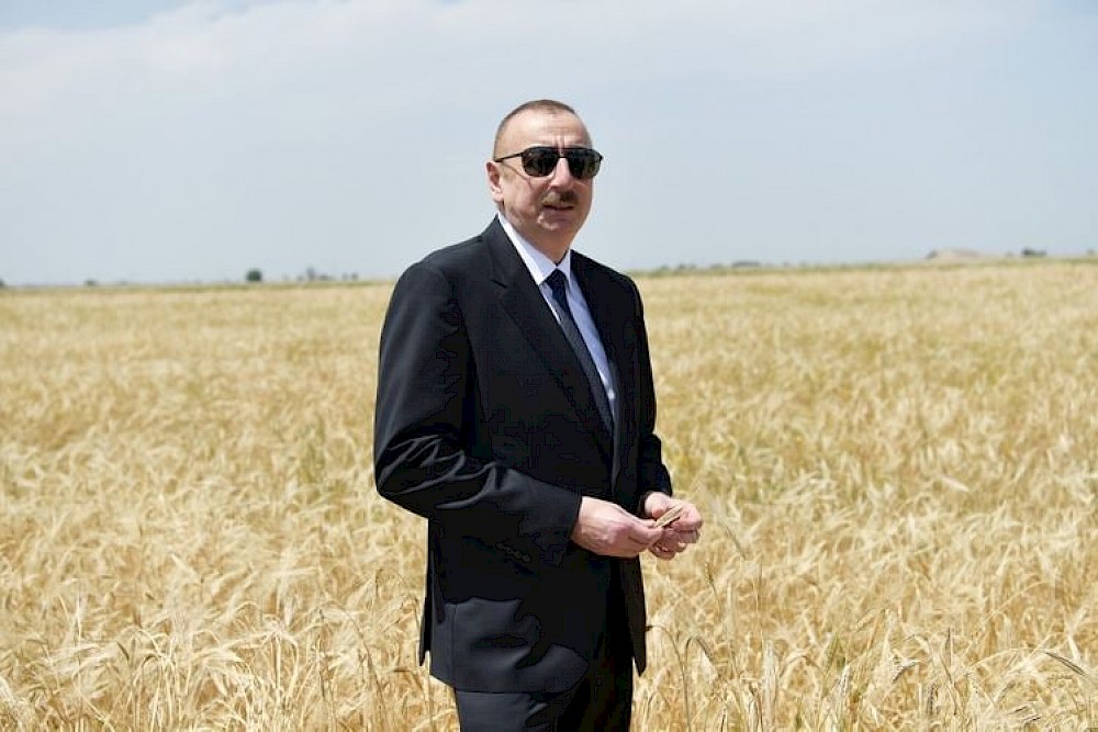 İlham Əliyev Ağcabədi rayonunun Hindarx qəsəbəsində taxıl biçininə başlanması mərasimində. 03.06.2020