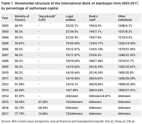 The International Bank of Azerbaijan has never listed its shareholders by name when releasing their reports and stock issue announcements, but instead as legal and physical entities. That is why the parties controlling its capital and management have been completely hidden from the public until the beginning of 2017.