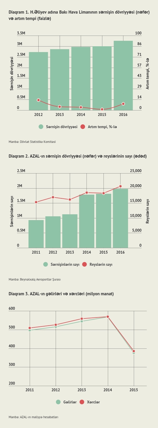 Uzun illər idi ki, Azərbaycanda hava nəqliyyatı infrastrukturu tənqid atəşinə tutulurdu. Buna səbəb yüksək qiymətlər və qiymətə uyğun olmayan xidmətlər idi. Amma son zamanlar vəziyyət qismən dəyişib. Bakıya aşağı büdcəli aviaşirkətlər uçmağa başlayıb, aeroportda göstərilən xidmətlərin keyfiyyəti artıb.