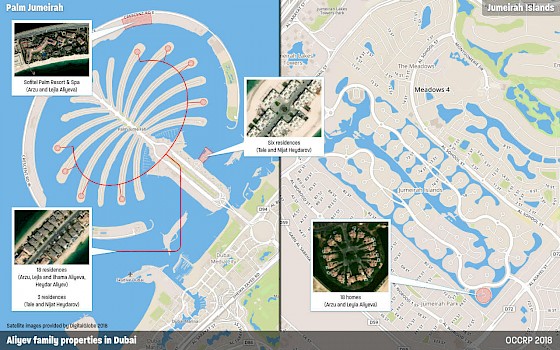 Bundan əlavə OCCRP-nin bundan əvvəlki araşdırmaları göstərib ki, Əliyev ailəsi Azərbaycanda da 100 milyon dollardan dəyərində hotel şəbəkəsinə sahiblik edir. Həmçinin Heydərovun oğlanlarının da Jumeirah adalarında ümumi məbləği 33 milyon dollardan çox qiymətləndirilən 9 hoteli var.